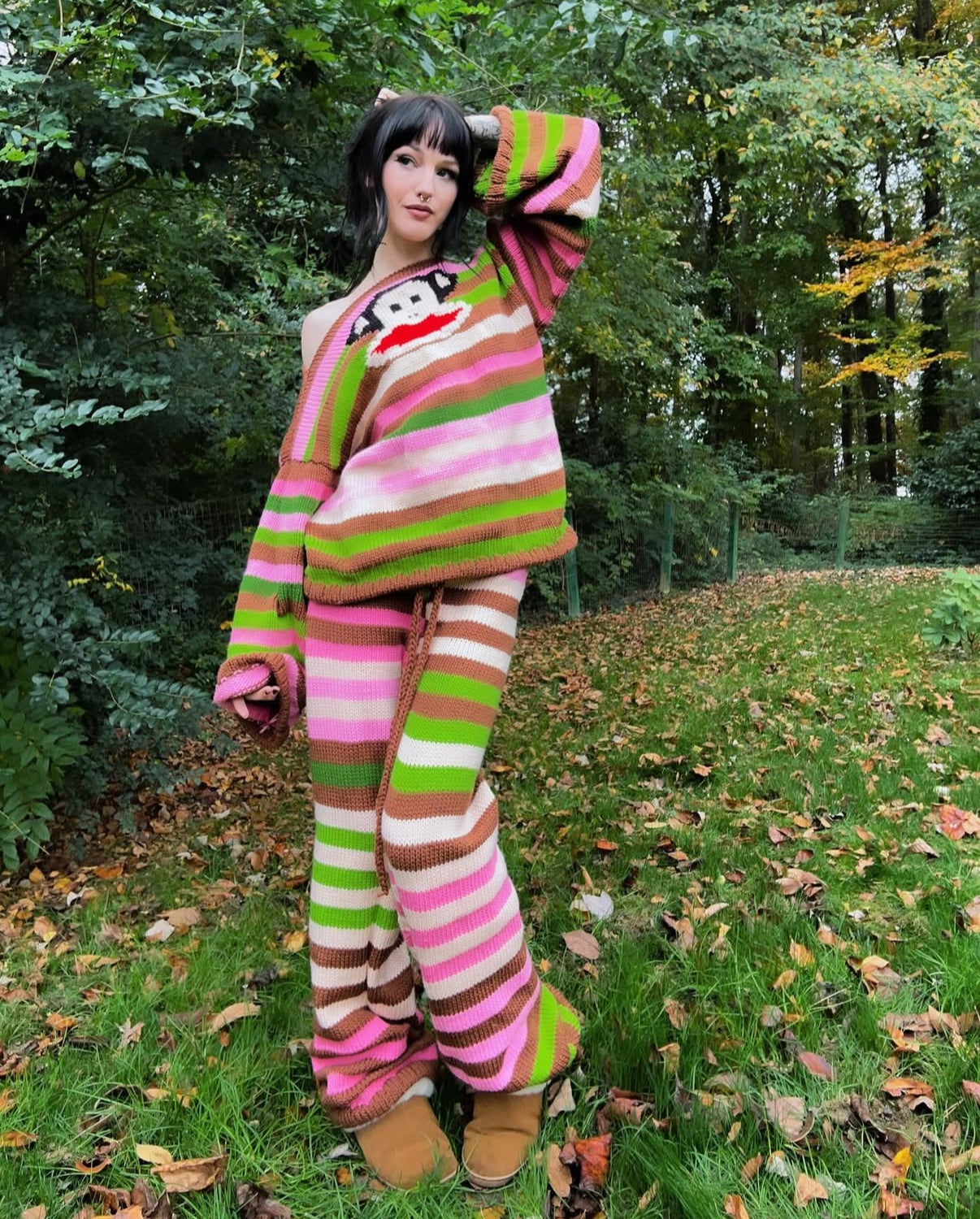 Tired of the same old drab winter wear? Standard sweaters often fall short in terms of both style and comfort, but the Monkey PF Set solves that problem. Its soft, stretchy knit ensures a relaxed fit, while its unique striped pattern and quirky monkey graphic bring an exciting visual flair to your wardrobe. It’s not just an outfit; it’s a statement of boldness and creativity. Feel confident and playful without sacrificing warmth or comfort.
